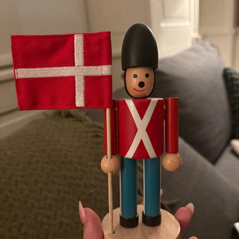 Den er stadig i den originale æske, og den måler 21 cm.i højden.