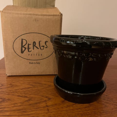 Bergs københavner krukke SORT, Ny/ubrugt/udgået sort Bergs Københavner krukke glaseret ø 18 cm (stor) inkl. underskål.