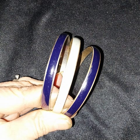 Metal armbånd de måler I diameter 7 cm og i tykkelsen 2 og 3 mm Pris pr stk. 6 kroner Pris for 5 stk. 25 kroner Har 10 stk af hver slags og de er alle nye