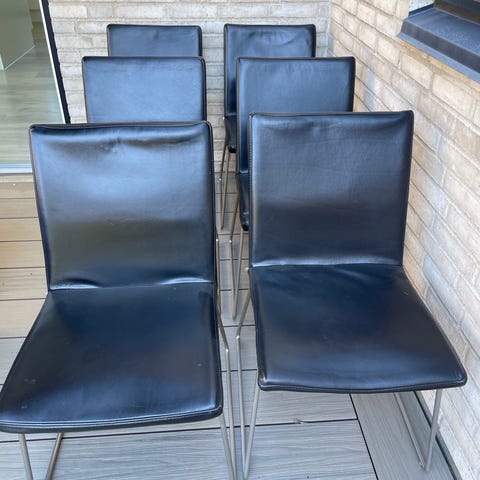 6 stk. BoConcept Curve spisebordsstole i sort læder med sortlakerede metalben.