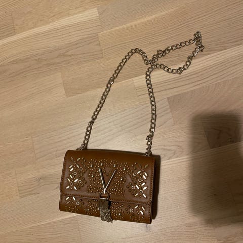 Valentino taske i kunstlæder designet til kvinder. Tasken har en quiltet overflade og en kæderem med sort læderdetalje for skulderbæring. Tasken er velegnet til daglig brug og kan rumme personlige ejendele.