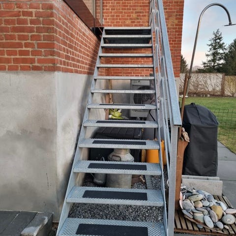 Skridfast med gelænder i den ene side og i rigtig god kvalitet.