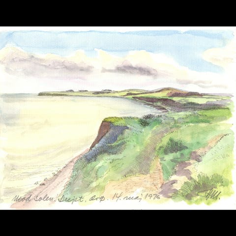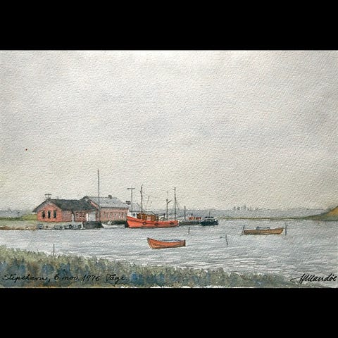 Akvarel af Slipshavn 17-08-1974 malet af Hans Mandøe