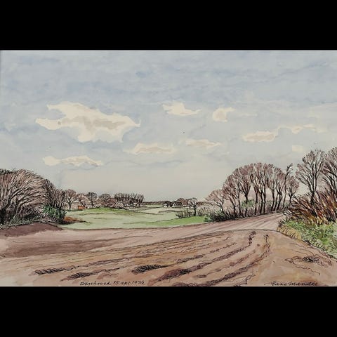 Akvarel af Drejet, Ærø 14-05-1976 malet af Hans Mandøe