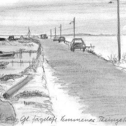 Akvarel af Slipshavn, tåge
