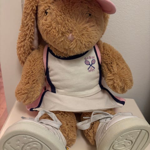 Jule gaveide. Nyvasket : Bamsekanin med Tøj og Lyserøde Sko Bamsedyr Krammedyr Plysdyr Måler 47cm. pigelegetøj pige legetøj babylegetøj baby legetøj