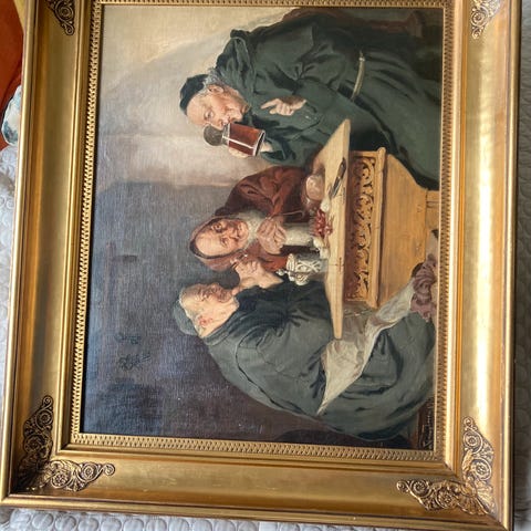 Præsten, fiskeren og købmanden spiller harazrd. Præsten var malet uopdaget med 6 fingrer i 120 år. Prisen går op pga at præsten er et unikum malet med 6 fingre.