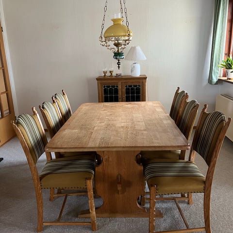 Spisebord m/stole, Elmetræ, Fint Elmetræsbird m 4 stole