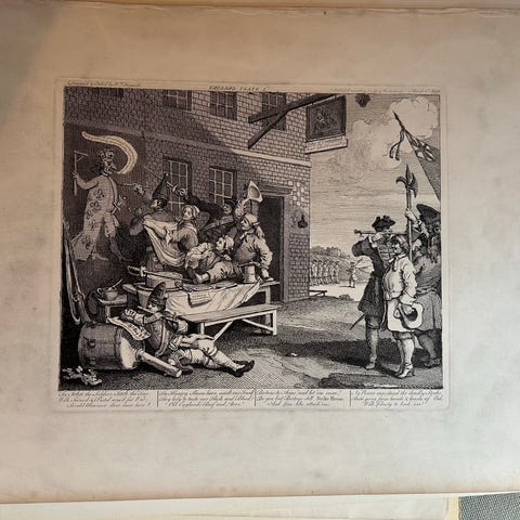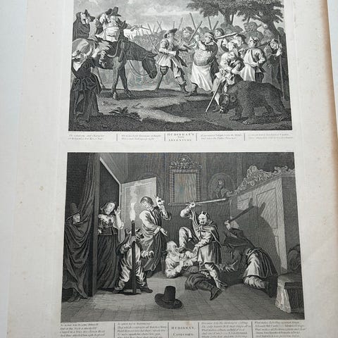 Et sjældent og historisk interessant sæt, som udgør begyndelsen på Hogarths satiriske serie over Hudibras. Perfekt til samlere af klassisk grafik.
