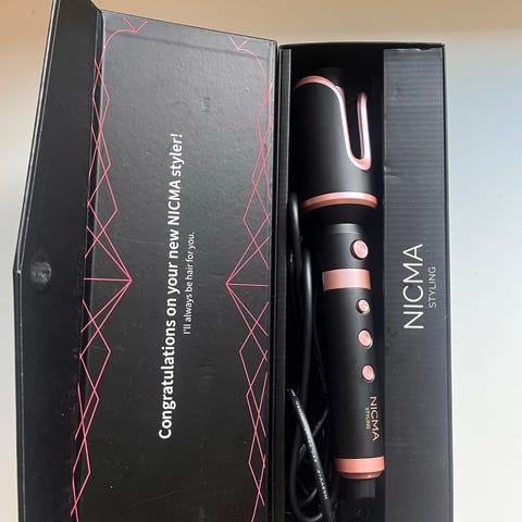 Nicma Styling The Auto Twist Curler hårkrøller med automatisk drejefunktion. Enheden har en sort og kobberfarvet farve og leveres med ledning til strømforsyning. Designet til at skabe krøller i håret ved hjælp af varme og automatisk indtrækning af hårstrå.