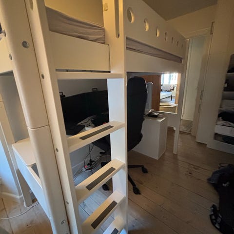 Flexa køjeseng 90x200, med stige og sengehest, ny pris 6.999 kr., uden madrasser, købt i 2022.