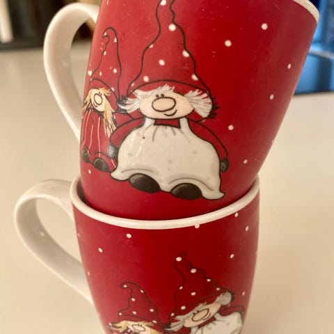 2x kopper med julemotiv fra “det gamle apotek”