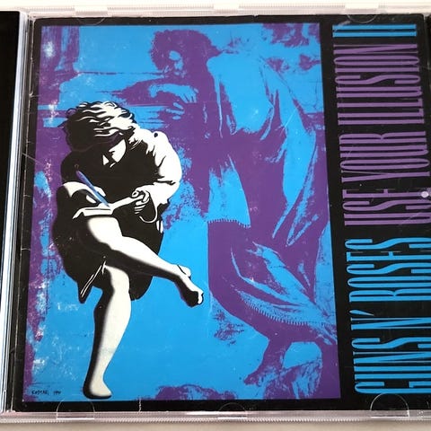 Guns N' Roses Lies CD album featuring tracks such as "Reckless Life," "Nice Boys," "Move to the City," "Mama Kin," "Patience," "Used to Love Her," "You're Crazy," and "One in a Million." Released under Geffen Records, includes original album artwork and track listing.
