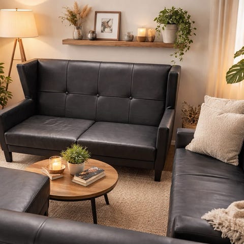 Juhl sofaen er nøje konstrueret for at kombinere funktionalitet og elegance. Det er skabt med henblik på at indgå harmonisk i mindre arealer, takket være dets indskrænkede dimensioner og minimalistisk design. Med sin sorte PU læderpolstring tilføjer Juhl en sofistikeret nuance til din indretning.