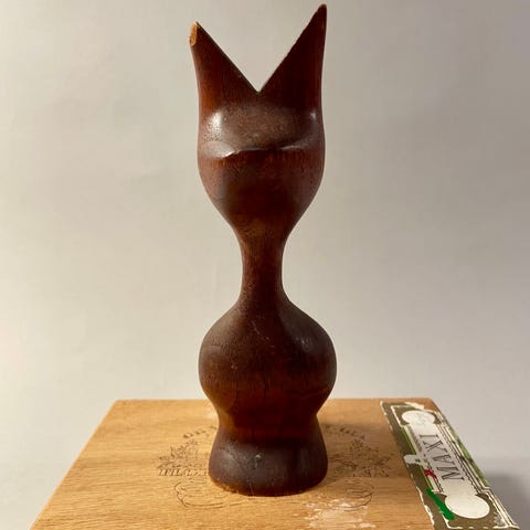 Kattefigur i teaktræ - h 21 cm - ingen synlige brugsspor -