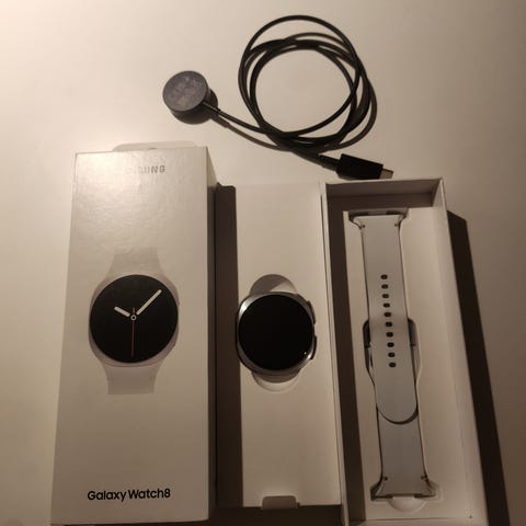 Samsung Galaxy Watch8 Smartwatch med en skærmstørrelse på 40mm i farven graphite. Uret har Bluetooth-forbindelse og leveres med original emballage og rem. Designet til at give brugeren adgang til forskellige funktioner og apps via et bærbart, håndledsbåret display.