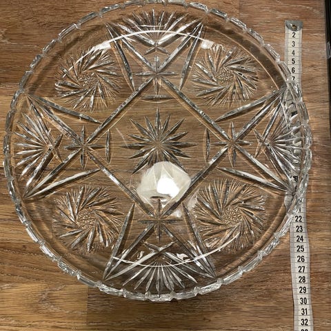 ældre stor klar glasfad lagkagefad glas kagefade med mønster Pynt Sender gerne