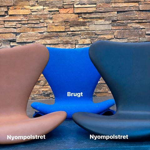 Professionelt nypolstret efter det traditionelle håndværk fra Fritz Hansen og totalrenoveret – stolene fremstår i særdeles flot renoveret stand.