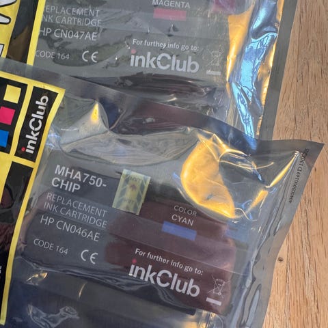 Patronerne er helt nye og ikke brugte, men de har været monteret i min printer kortvarigt. Desværre har jeg været en del af HP's "instant ink"-program, og har man det, accepterer printeren kun originale (og dyrere) HP-blækpatroner.