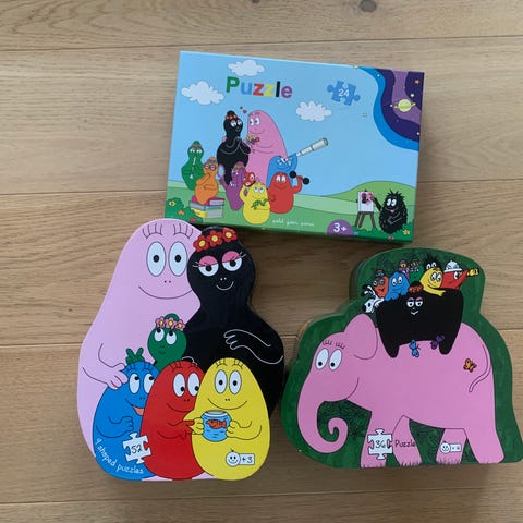Flot puslespil med 36 kraftige brikker med Barbapapa på Safari. Flot stand fra ikke ryger hjem.