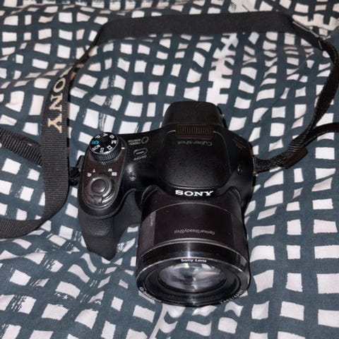 Sony Cyber-shot Digitalkamera med zoomobjektiv og ekstern blitz
