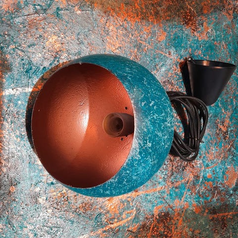 1 stk håndmalet Globe Ø20 loftlampe i irgrøn/turquoise/kobber