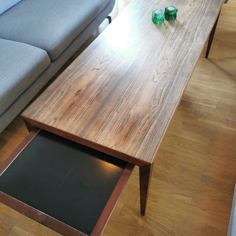 Smukt proportioneret sofabord i palisander, designet af Severin Hansen Jr. for Haslev Møbelfabrik. En tidløs klassiker med elegant, skandinavisk formsprog.