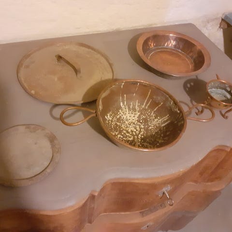 Smukt antikt kobberlåg - vil pynte i ethvert køkken og give et særpræg.