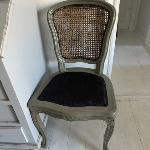Fine gråmalede spisebordsstole fra Jytte Demuth.
