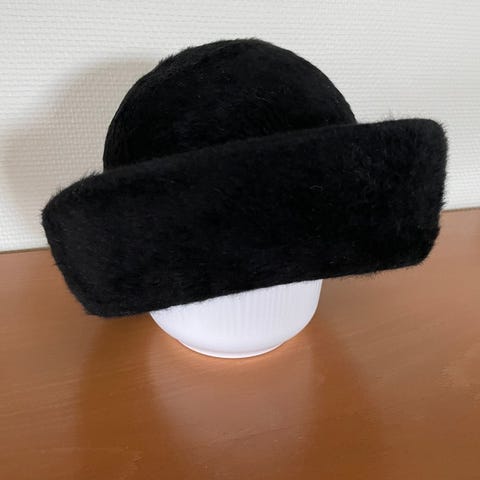 Hatten har et meget diskret indhak, som jeg ikke kender årsagen til, da den aldrig har været i brug. Prisen er sat derefter.