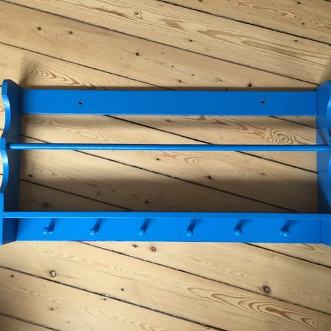 Tallerkenrække, hvidmalet, med god plads til tallerkner, fade eller bøger, lille hylde forneden.