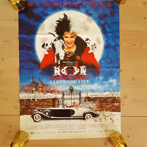 Walt Disney 101 Dalmatinere plakat med motiv fra filmen. Plakaten er indrammet og viser en gruppe dalmatinere sammen med karakterer fra filmen. Plakaten har en bagplade og ophængningsbeslag bagpå.
