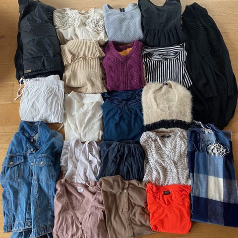 Tøj pakke med minimum 5 stykker tøj her er der så 5 stykker tøj (heraf 1 sæt) + bog