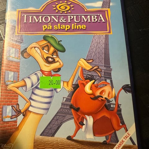 Disney Timon & Pumba På Slap Line DVD med 5 sjove episoder. Produktet indeholder animationer med karaktererne Timon og Pumba og er i standard DVD-format.