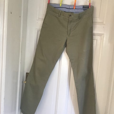 Helt nye polo Ralph Lauren bomuldsbukser i blå med hvid strib i størrelse large. Buksenstumper lidt og er med bånd i taljen.
