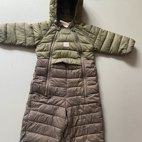 Mørkegrøn mar mar flyverdragt med dobbelt lynlås, så den er let at få af. Aftagelig hætte. God og varm