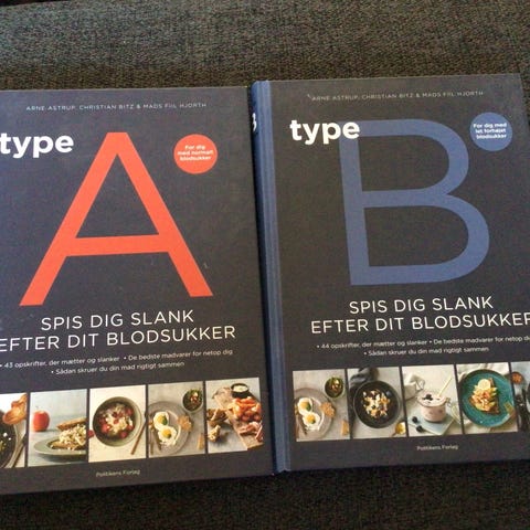 Type A bog med fokus på kost og blodsukkerstyring. Indeholder opskrifter, ernæringsvejledning og detaljerede kostplaner. Bogen indeholder billeder af madvarer og trin-for-trin instruktioner til sund kost. Dansk sprog.