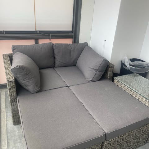 Udendørs Loungesæt i Gråt Flet med Glasbord