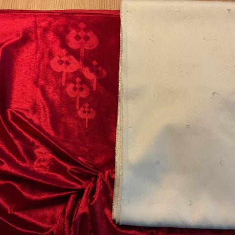 2 stk røde juleduge. De er lidt mørkere end på billederne. 100% afrikansk bomuld. 117 cm bred og 196 cm lang. Sælges samlet for 150kr. Brugt en gang og vasket. I fin stand