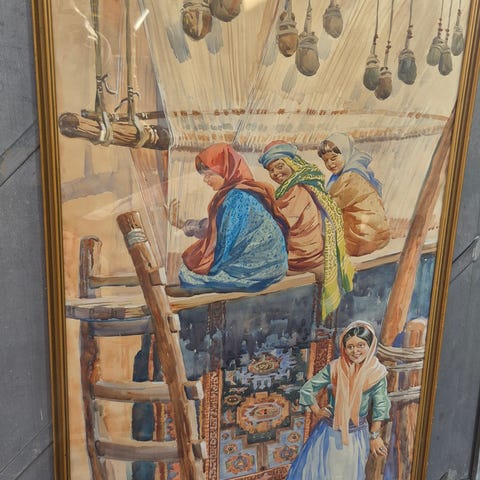 Akvarel, Christian Aaby-Talge 1898 - 1973, sign. BAZAR MED HANDEL MED ÆGTE PERSISKE TÆPPER. 82 x 62 cm. Incl. ramme.