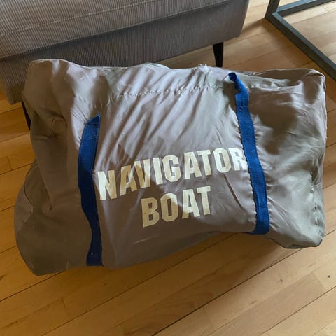 2 personers oppustelig kano. 2 sæder og pagajer følger med. Holder luft og har aldrig været utæt, farve er falmet i solen og trænger til en vask ellers fin stand.