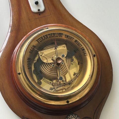 R.C. Vægbarometer med termometer i udskåret træ