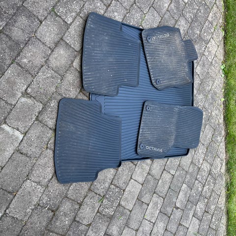 Skoda Octavia vinter gummimåtter sæt bestående af fire dele. Måtterne er sorte og designet til at passe specifikt til Octavia modellen. Materialet er gummi, som giver beskyttelse mod snavs og fugt. Sættet inkluderer måtter til både for- og bagsæder.