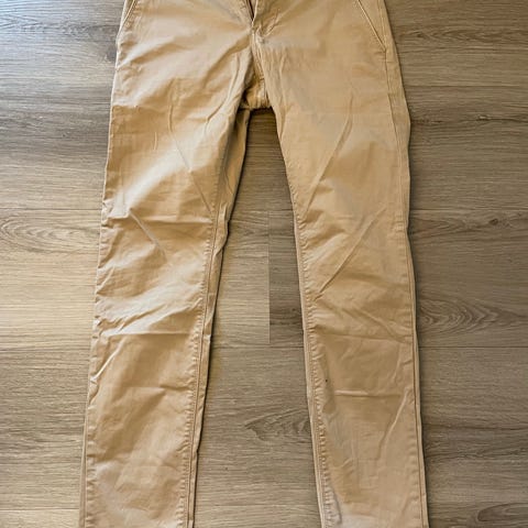 Matinique herre bukser i størrelse M med taljemål W34. Bukserne er grå i farven og designet til mænd. Bukserne er grå/bruge, og et mini slidmærke. Se foto