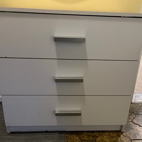 Lille hvid kommode med 4 skuffer. I meget fin stand.