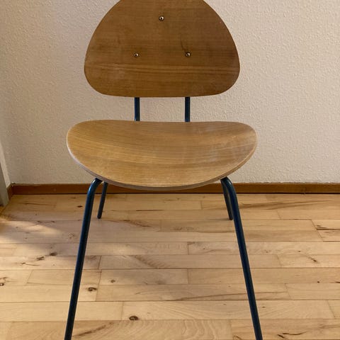 Super fin lyserød søsternegrene stol. Nem at tørre af. Siddehøjden er 50 cm