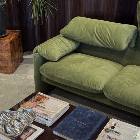 675 MARALUNGA sofa, designet af Vico Magistretti for Cassina i 1970’erne. Original polstring i højkvalitets, brunt-meleret stof-velour. Ryglænene på to-personers sofaen kan nemt hæves, hvilket gør siddepositionen mere behagelig