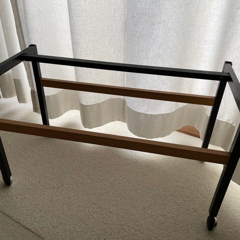 Fint fyrretræs rullebord/TV-bord. Vi har brugt det som et lille bord ved en lænestol. Det er lakeret og i fin stand.