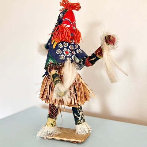 Håndskåret buste af balinesisk danserinde i national dragt.