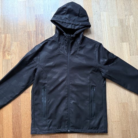 Super smart letvægtsjakke. Mørkeblå med foer i flot blank sølvgrå farve. Jakken har to stiklommer med lynlås. Elastik ved ærmer/manchetter og i linning. Både hætte og linning kan snøres ind/ud. Jakken er brugt ganske få gange og fuldstændig som ny. Nypris 399,-. Sender gerne via dba. Køber betaler porto.